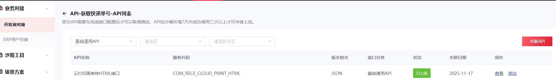 4. 沙箱接口调成功3次以上,测试月结卡号:7551234567,订单查询也要调3次